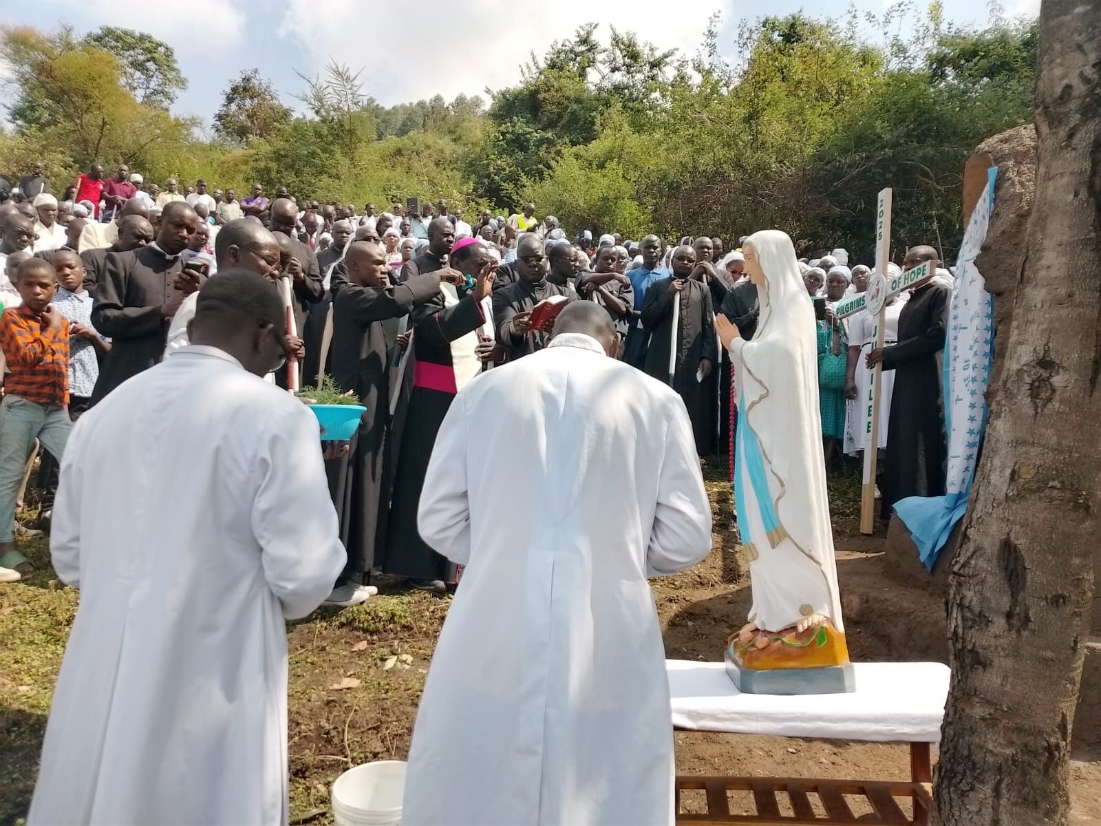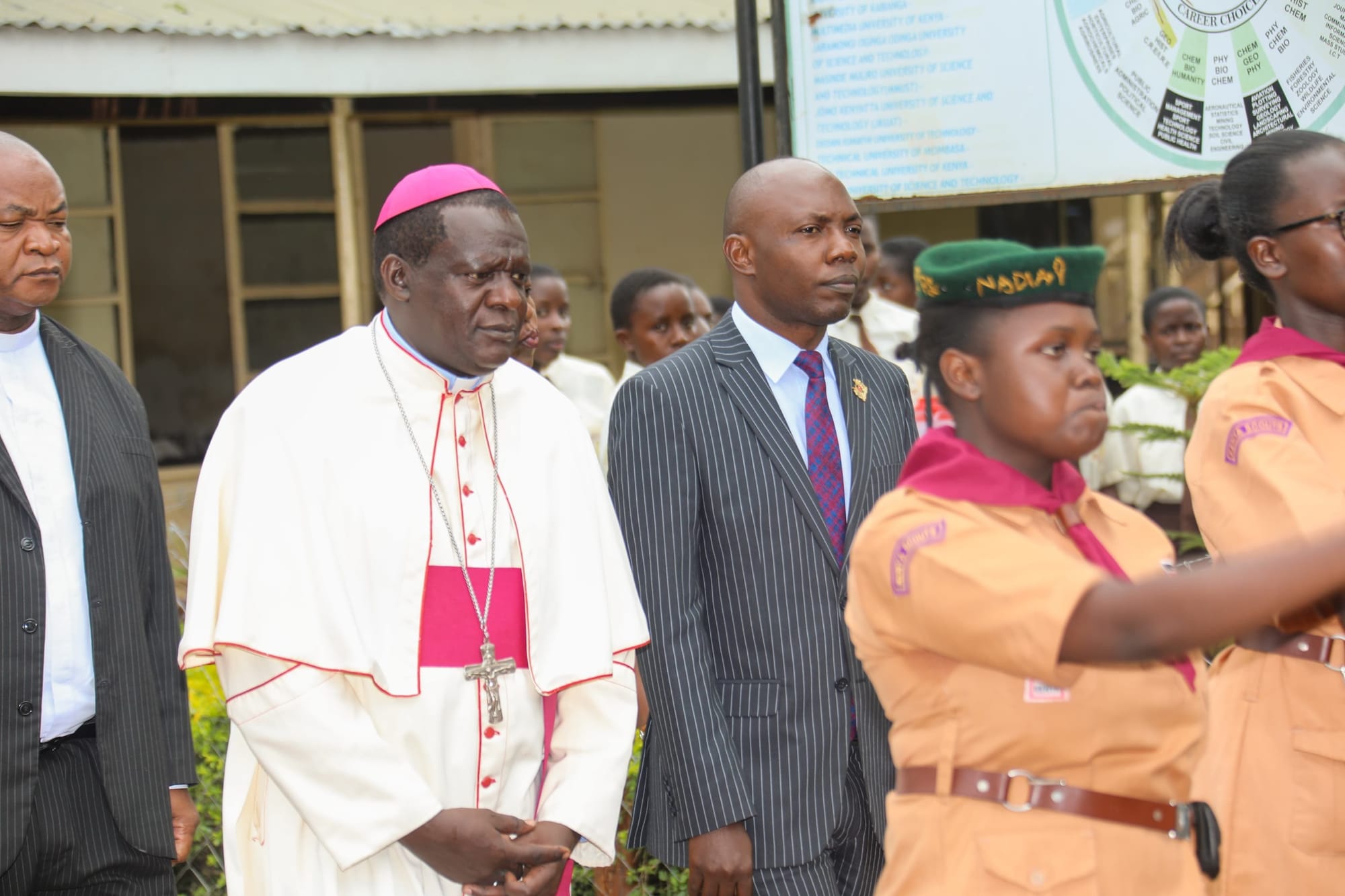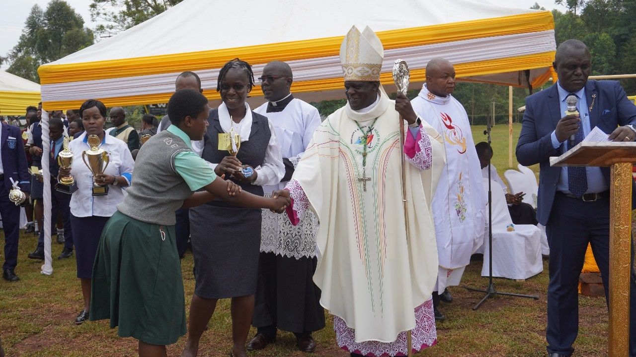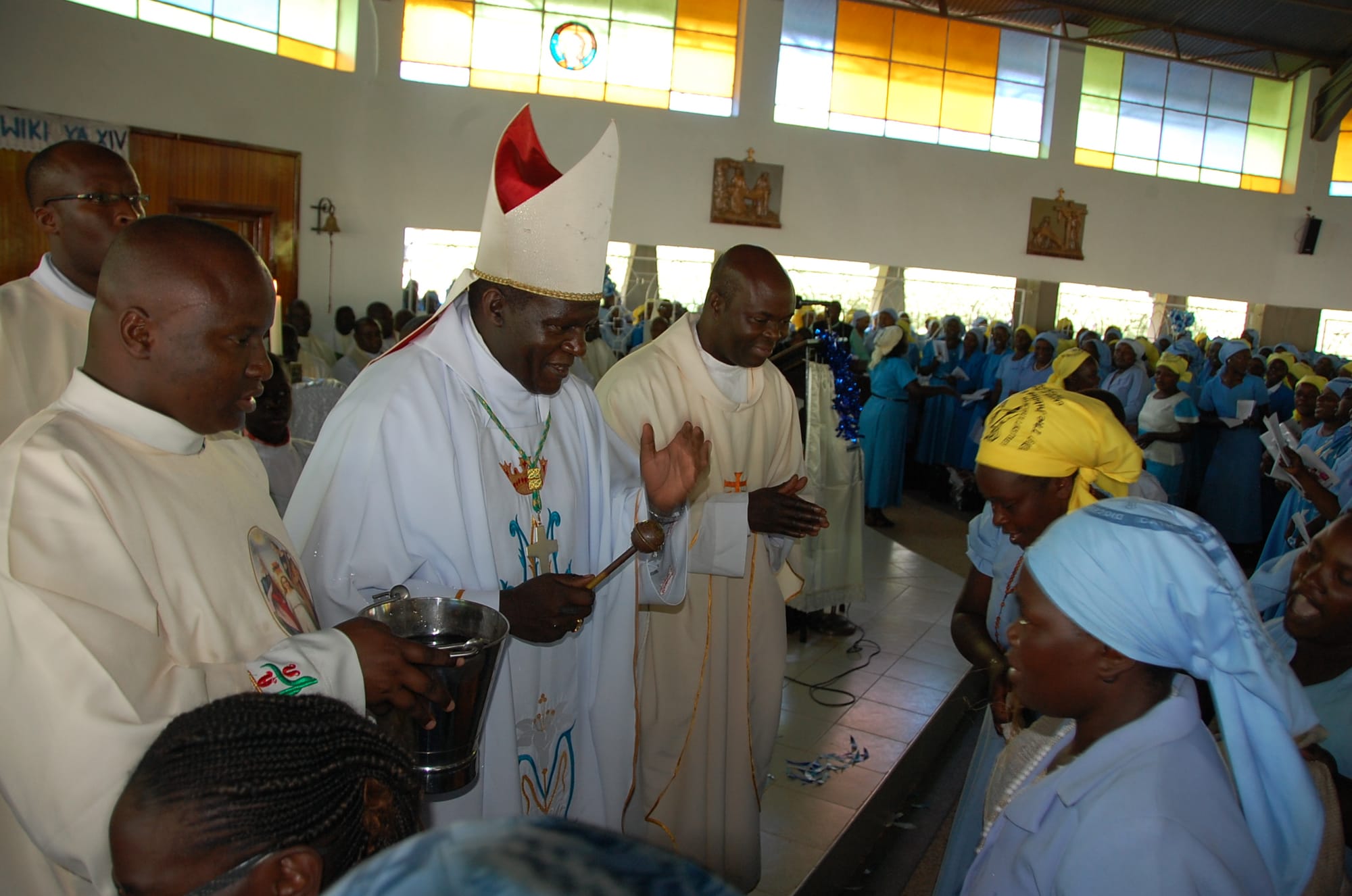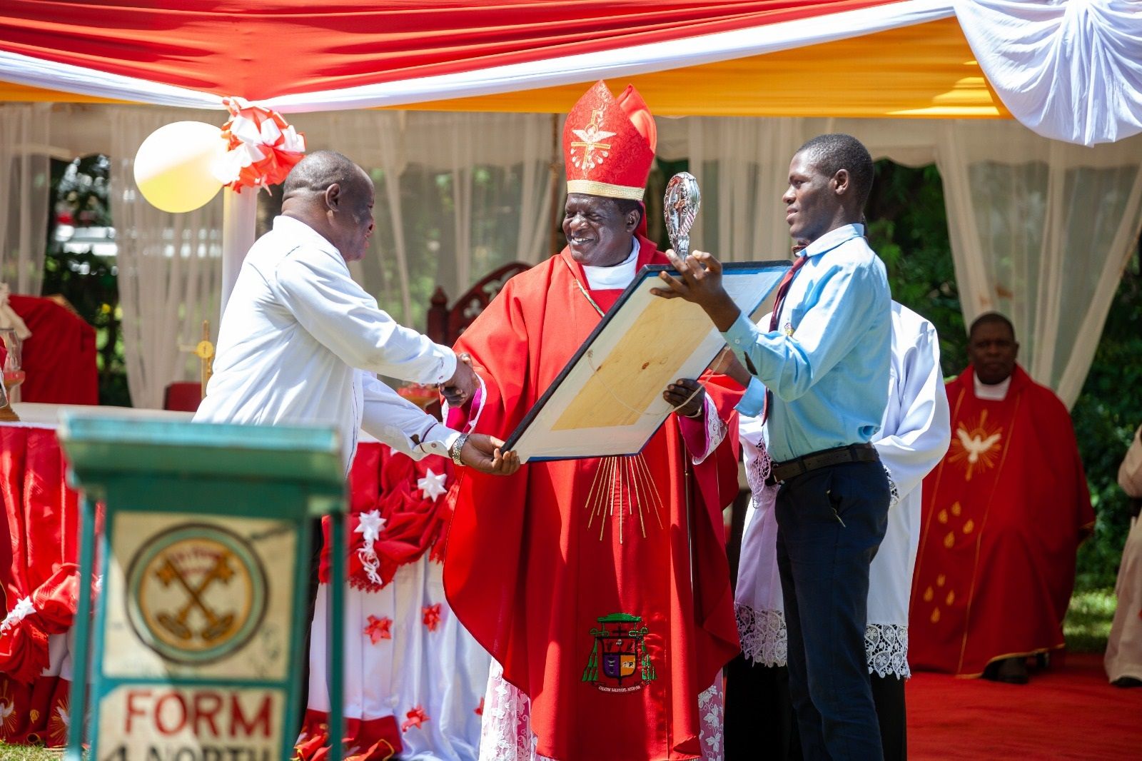 The Catholic Diocese of Kakamega is under the jurisdiction of Rt. Rev Joseph Obanyi Sagwe. The Catholic Diocese of Kakamega was created on February 27, 1978, from the Diocese of Kisumu. The first Bishop of the Diocese was Rt. Rev. Bishop Philip Sulumeti (1978-2015). The Catholic Diocese of Kakamega falls under Kisumu Metropolitan. It covers Vihiga and Kakamega counties in the Western region of Kenya. Currently, the Catholic Diocese of Kakamega has an area of approximately 3521 square kilometres. Presently. The diocese has a total of about 950,000 Catholics. RT. Rev Joseph Obanyi Sagwe was born on 10th March 1967 in Nyamire County – Kisii Catholic Diocese. He was ordained priest on 25th October 1996. He was consecrated and installed as the second Bishop of the Catholic Diocese of Kakamega on 7th March 2015.